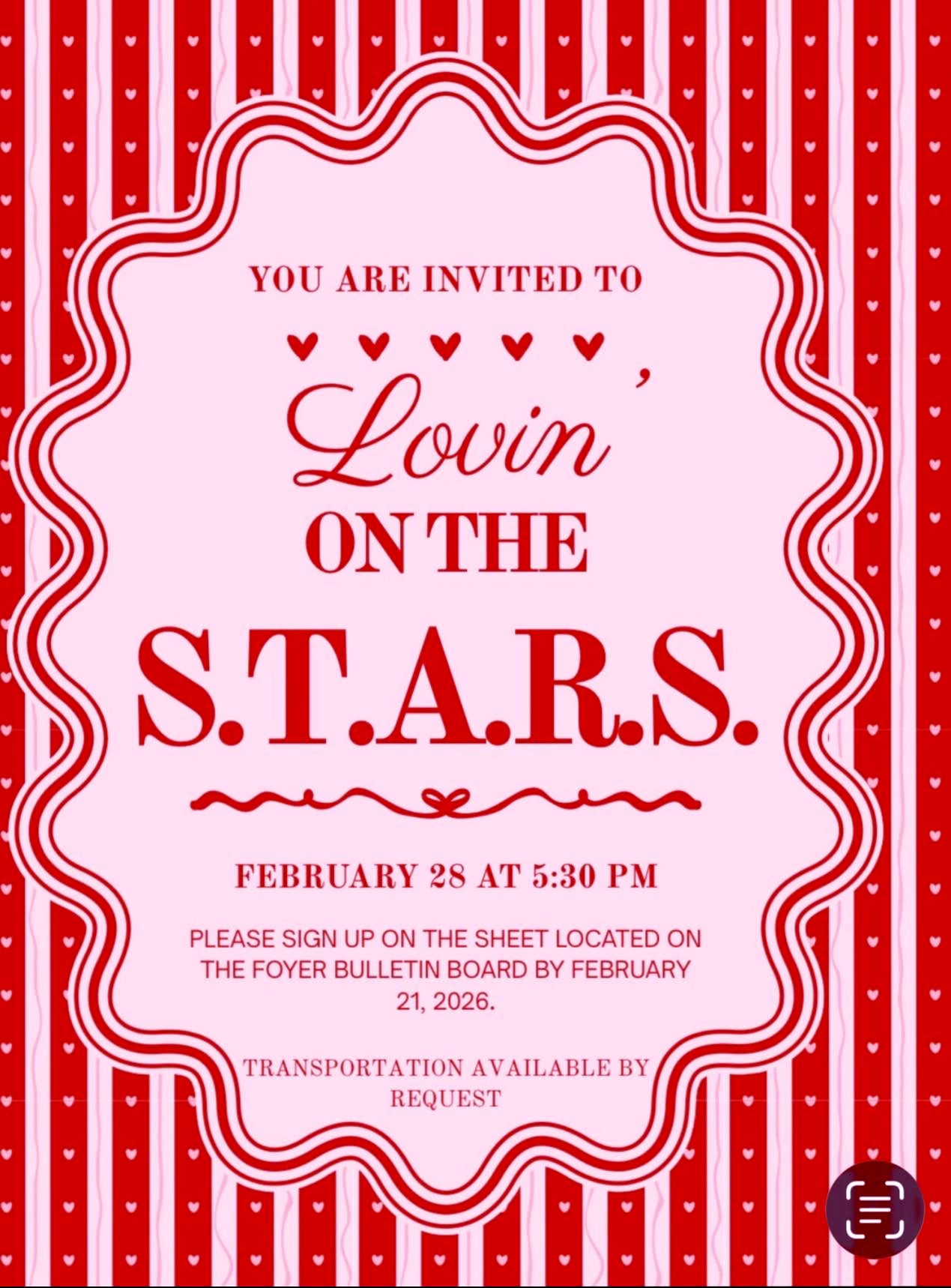 If you are 60 years of age and up, Mount Vernon’s young adults would love for you to join our night of Lovin’ on the STARS Saturday, February 28, at 5:30 pm. ALL SENIORS ARE WELCOME! IT WILL BE A NIGHT OF FUN ENTERTAINMENT AND DINNER. Please sign up on the bulletin by February 21.